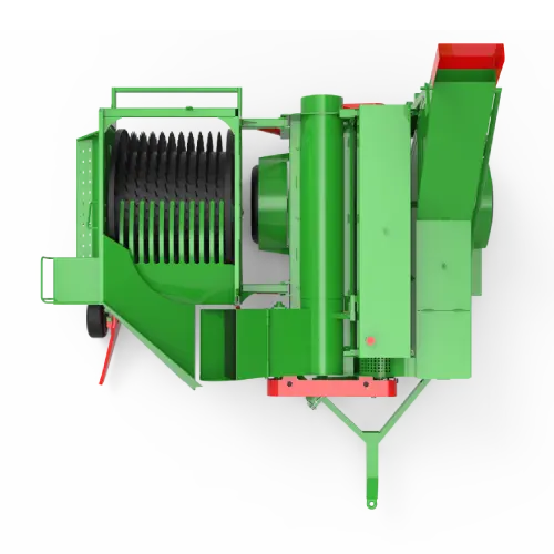 TR 2800 automatycznie zbiera dynie z pola, eliminując potrzebę manualnej ingerencji. Plony trafiają bezpośrednio do komory rozdrabniającej, gdzie nasiona są precyzyjnie oddzielane, oczyszczane i automatycznie pakowane.